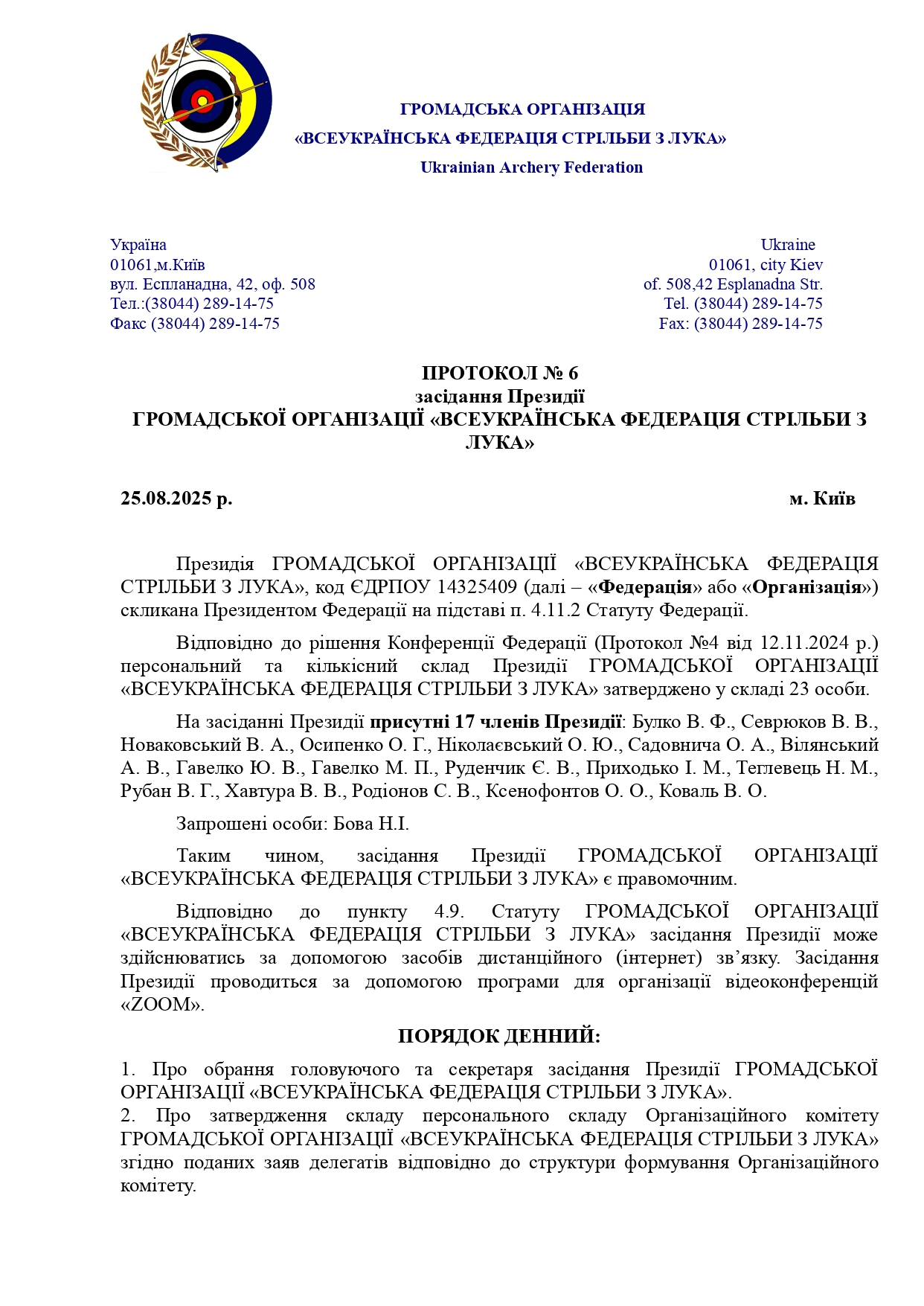 РЕГЛАМЕНТ проведення Кубку України в приміщенні серед дорослих зі стрільби з лука, ІІІ ранг (18-22.11.2025р., м. Львів) 27.10.2025