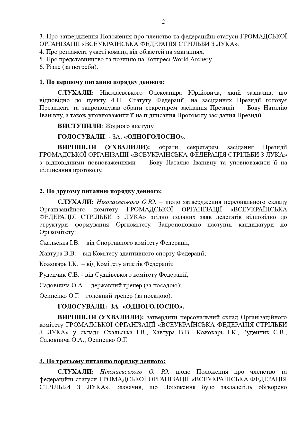 Протокол засідання Президії №6 від 25.08.2025 року admin 16.10.2025 ДОКУМЕНТИ Завантажити в PDF >>> Навігація записів Попередній Попередній запис: Фінальний рейтинг серед ЮНІОРІВ та КАДЕТІВ за 2025 рікНаступний Наступний запис: Протокол засідання Президії №8 від 06.10.2025 року Схожі записи РЕГЛАМЕНТ проведення Кубку України в приміщенні серед дорослих зі стрільби з лука, ІІІ ранг (18-22.11.2025р., м. Львів) 27.10.2025 Протокол засідання Президії №8 від 06.10.2025 року 21.10.2025 Фінальний рейтинг серед ЮНІОРІВ та КАДЕТІВ за 2025 рік 14.10.2025