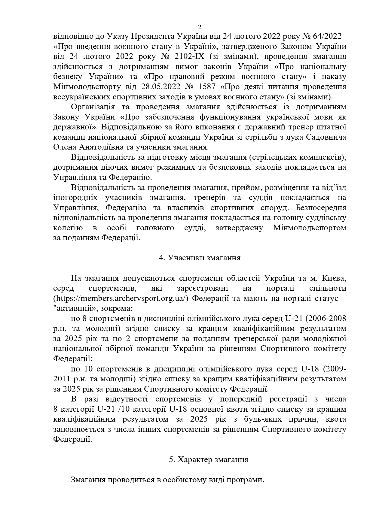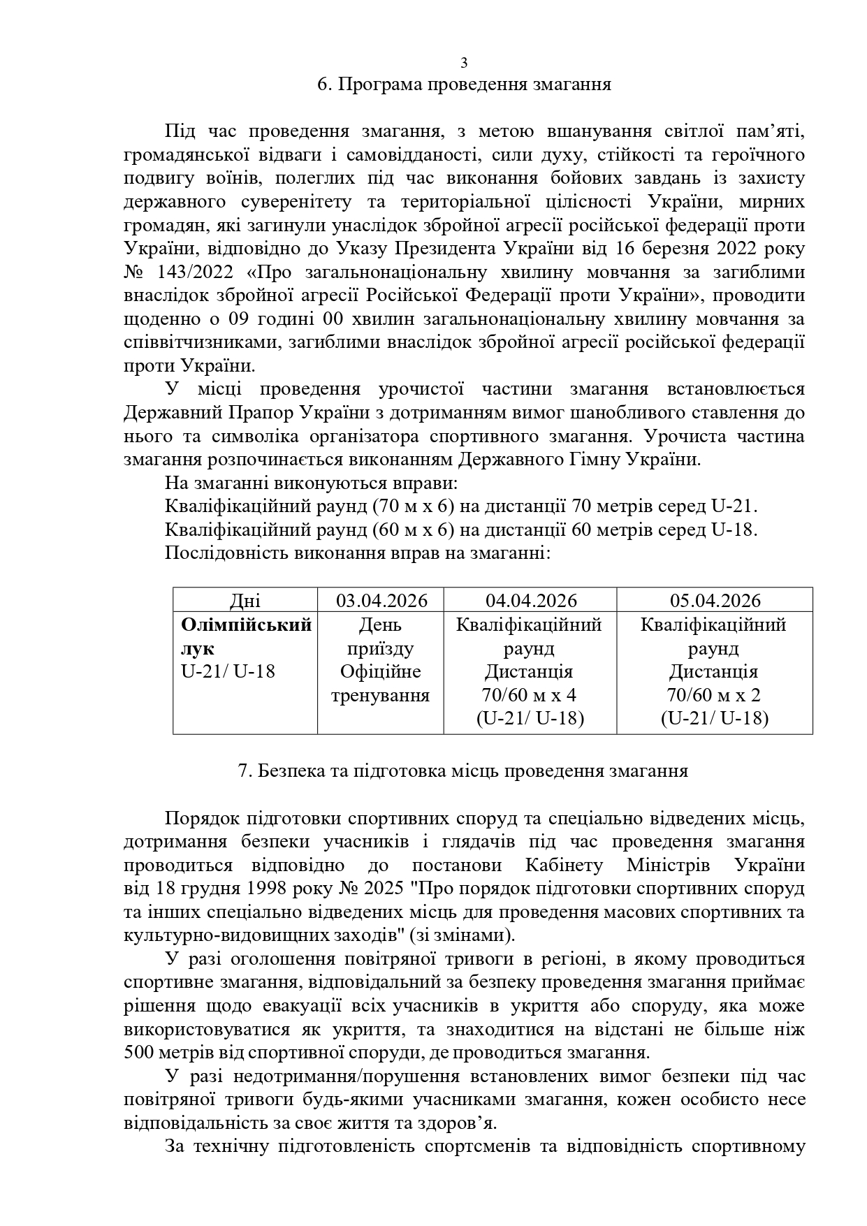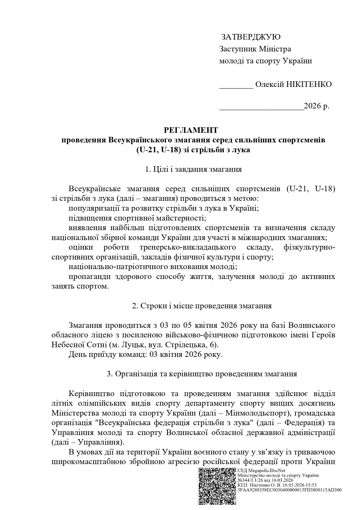 РЕГЛАМЕНТ проведення Всеукраїнського змагання серед сильніших спортсменів зі стрільби з лука, ІІІ ранг (12-16.03.2026р., м. Львів) 13.02.2026